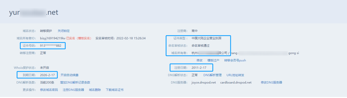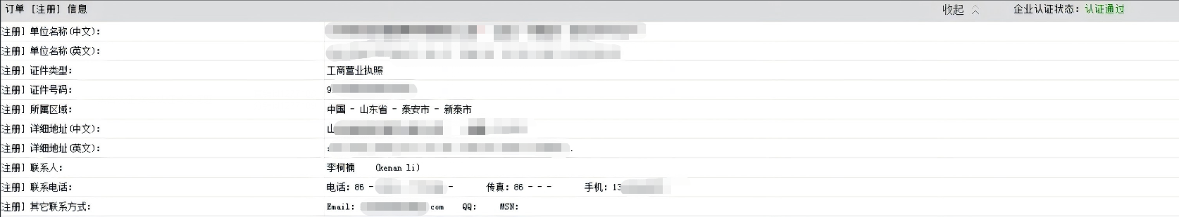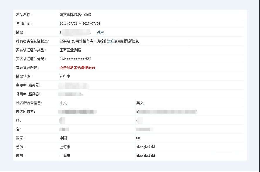三、常见外部平台域名实名信息截图(具体以购买域名的平台为准,如不确定可咨询其域名平台客服)
