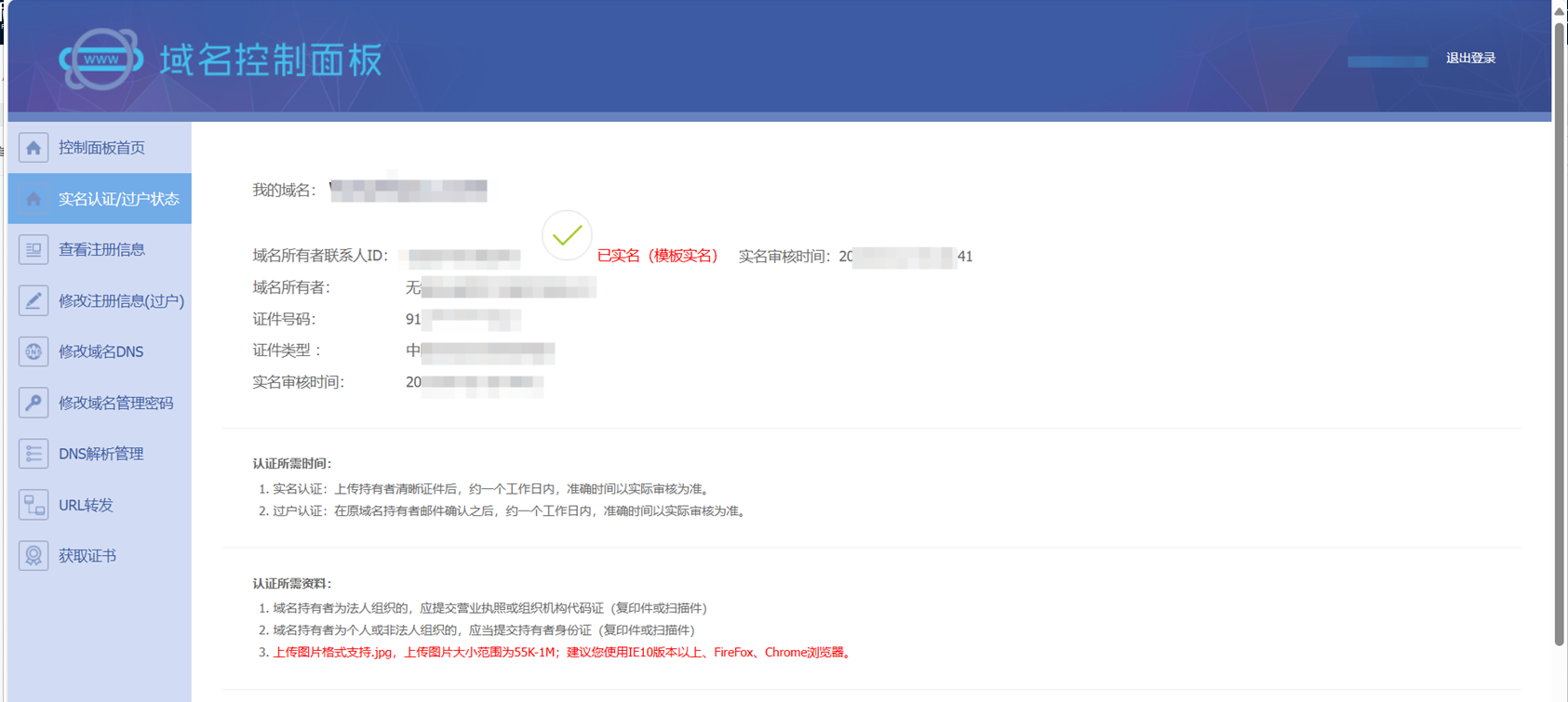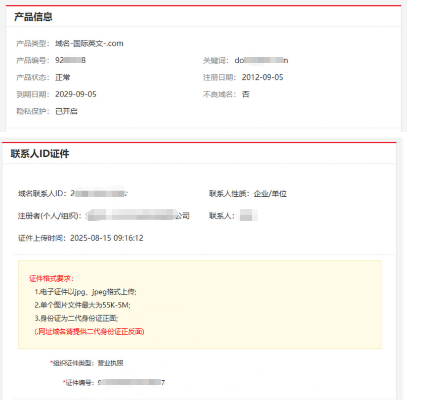 注意:如是第三方购买域名,需自行联系域名供应商获取域名实名信息截图。