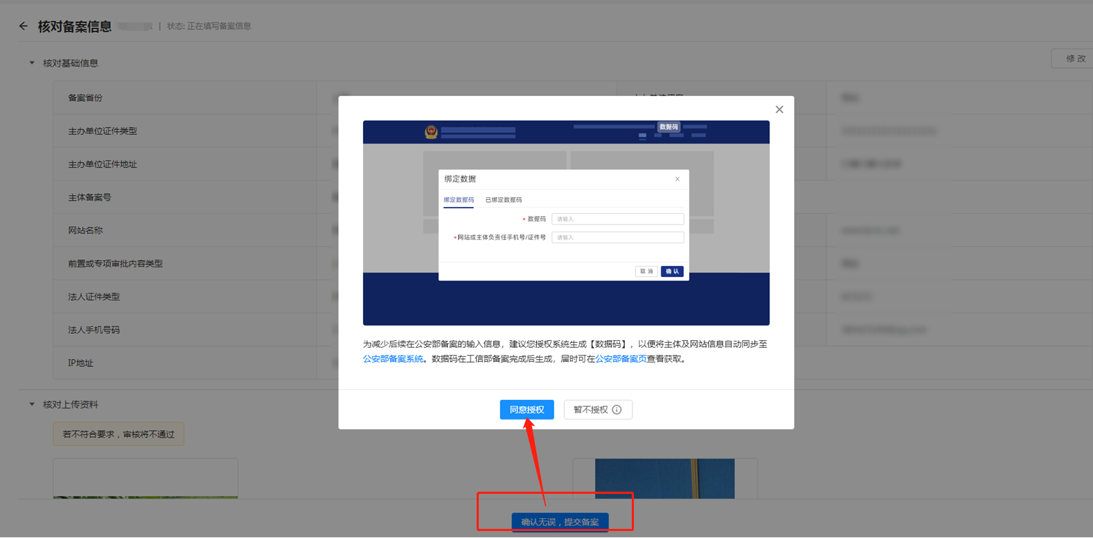 公安备案的数据码如何获取2026-02-12 16:33:01 数据码获取方式:在我司提交工信部备案资料时系统会弹窗提示是否授权,同意授权后,在工信部备案成功后,在我司公司备案信息查验界面会显示对应的授权码。数据码有效期为30天,30天后自动失效。操作界面如下: